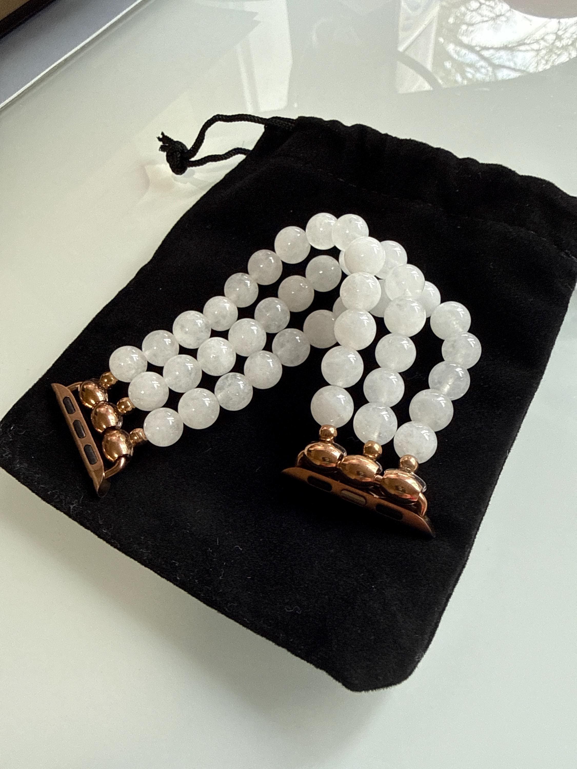 Looking for a pure white beaded Apple watch band? Look no further. This white jade beaded band is stunning!