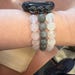 Stunning three stand apple watch band featuring moonstone, labradorite, and rose quartz beads.